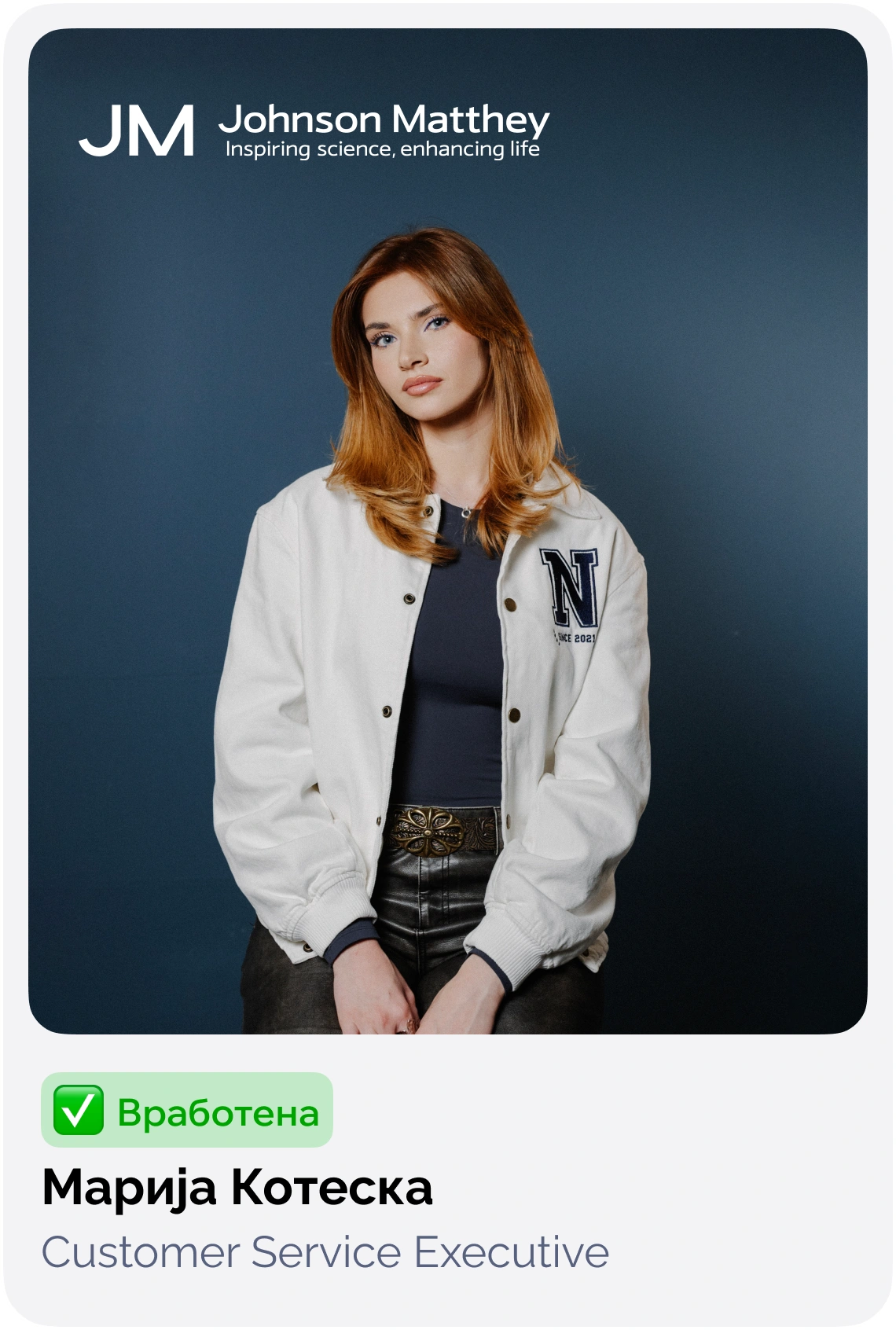 „Johnson Matthey инвестира во идните генерации затоа што ни се потребни млади ентузијасти коишто ќе помогнат во нашата визија и нашата цел – поздрава и почиста средина. Токму и заради ова и ја започнавме соработката со Brainster Next факултетот.“