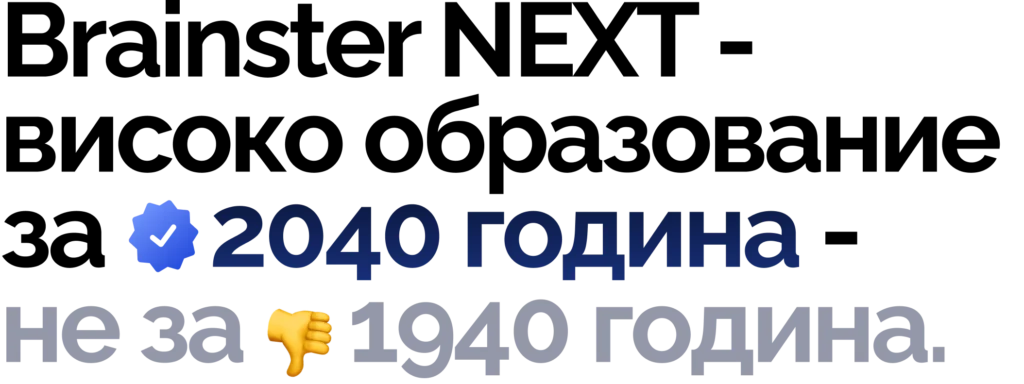 Brainster Next не е само високообразовна институција, туку е заедница која ќе ја имаш целиот твој живот. Тим од експерти, мрежа од интернационални компании и најдобрите таленти ќе станат твои пријатели, дел од твоето секојдневие и идни соработници и колеги. Биди во најдоброто друштво и решавај проблеми вредни за решавање.