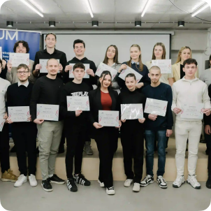 Our programs are developed in collaboration with companies that actively participate in the educational process. Students work on real projects, gain relevant experience, learn from industry experts, and are guided toward concrete professional skills.